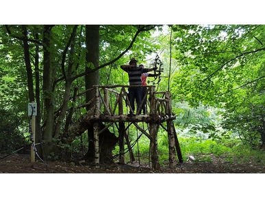 We are a club formed by Chris and Ben Jones the owners of Merlin Archery who have a love of field archery and IFAA/EFAA field in particular. They set out and have delivered a course and club facilities to rival any other club. We have a 28 target course and practice butts set over gently undulating mixed woodland, with the construction of a tree stand and the careful placement of targets a course full of interesting shots has been created.